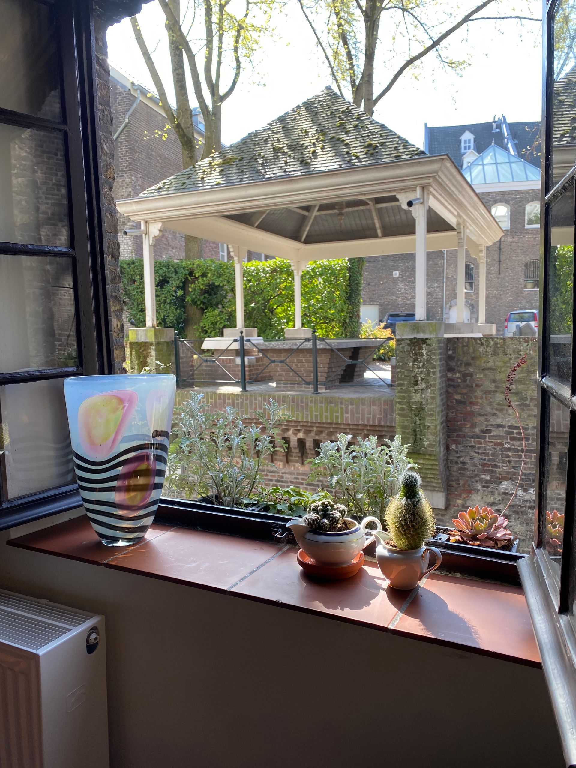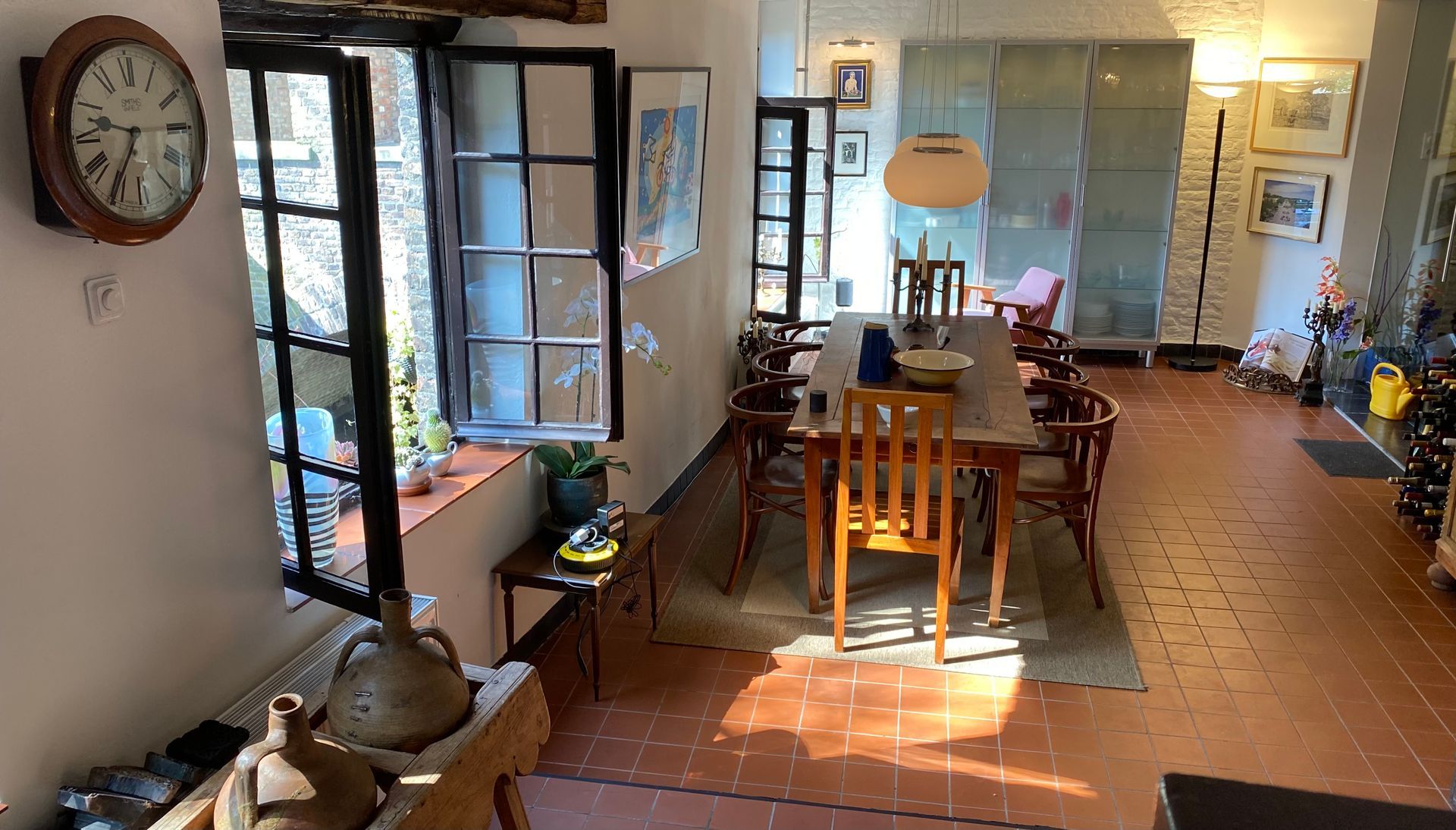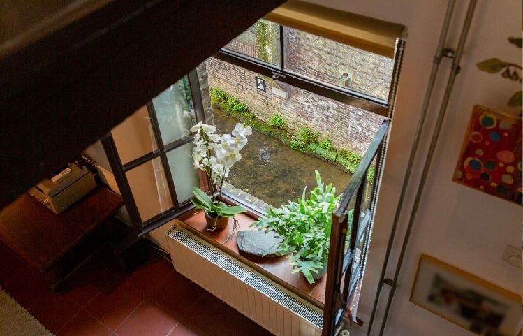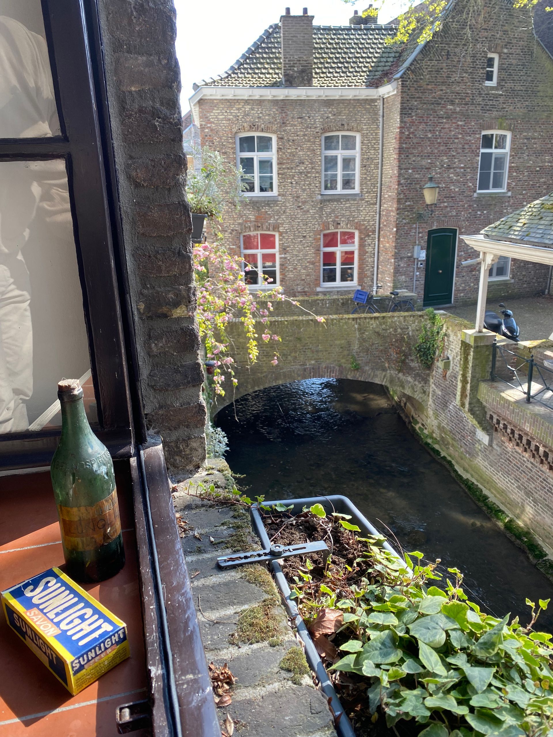 Grote openslaande ramen zorgen voor royaal daglicht en geven een geweldig uitzicht op de rivier de Jeker die langs het huis en dwars door de stad loopt.