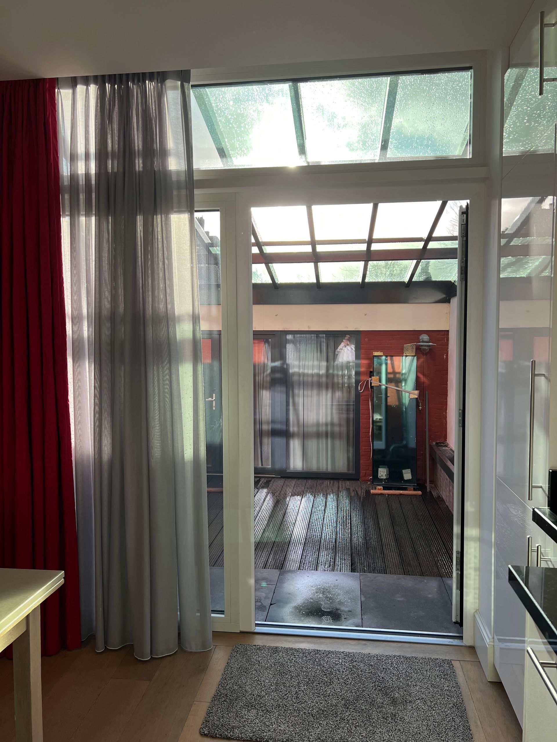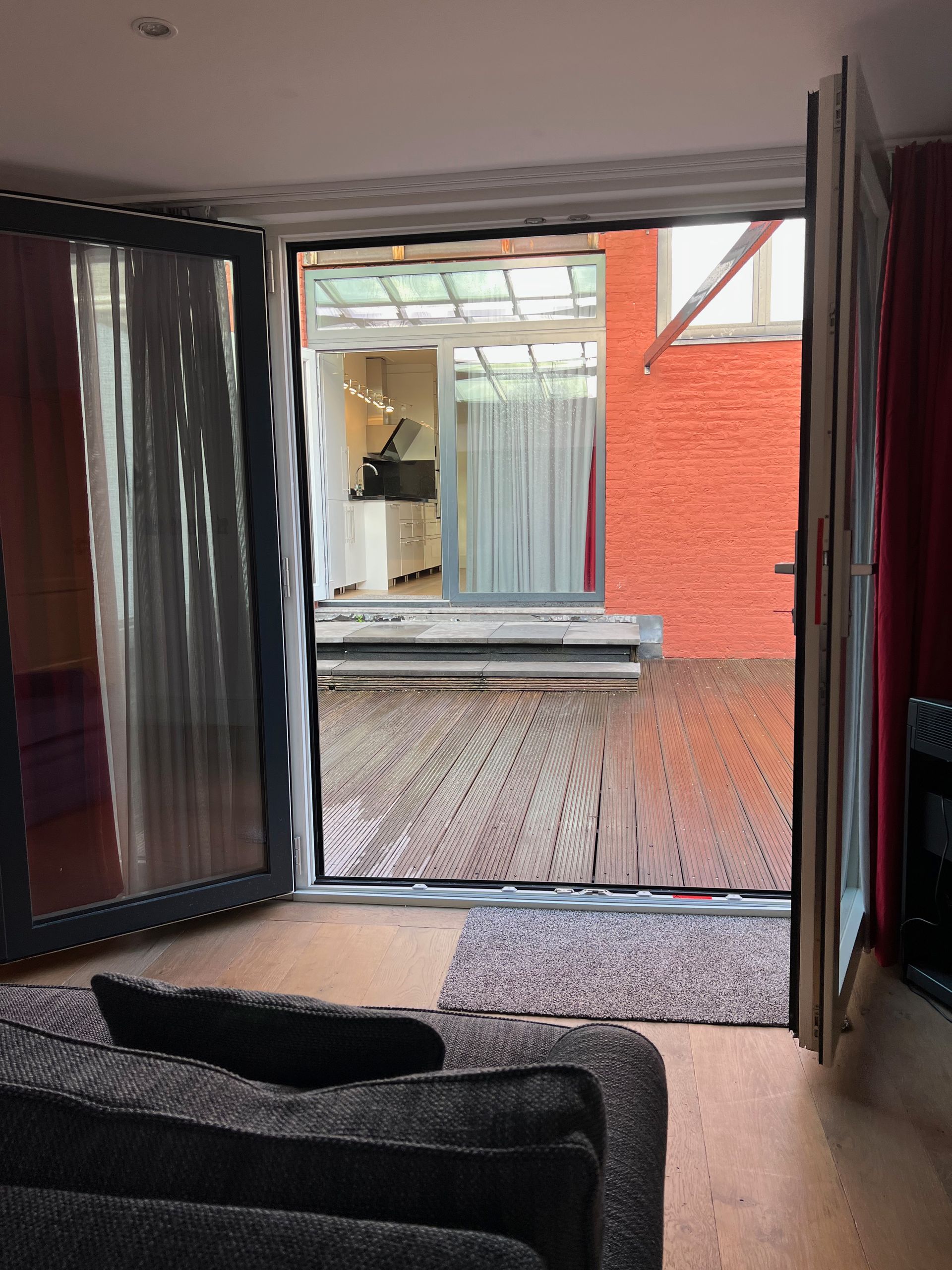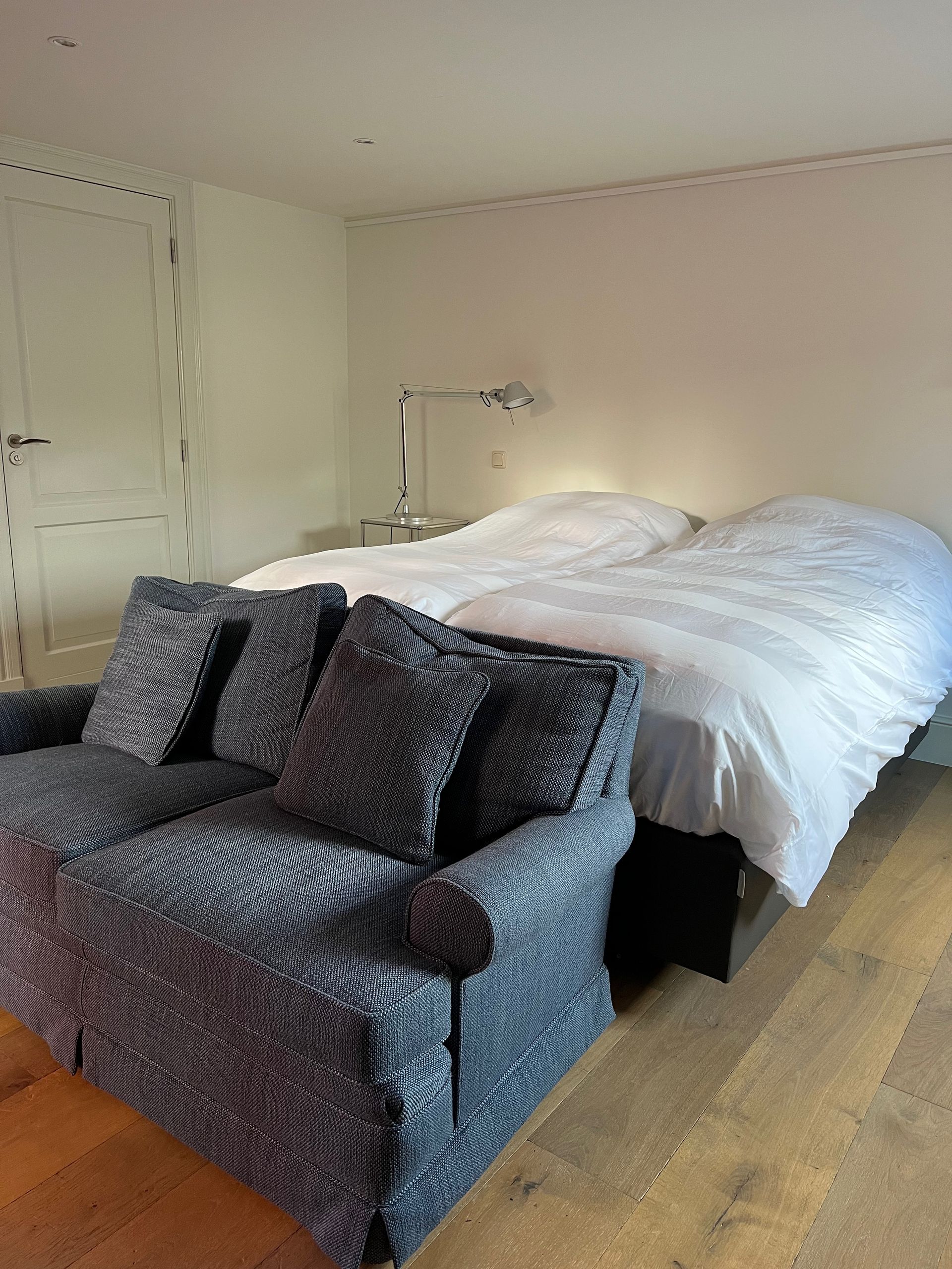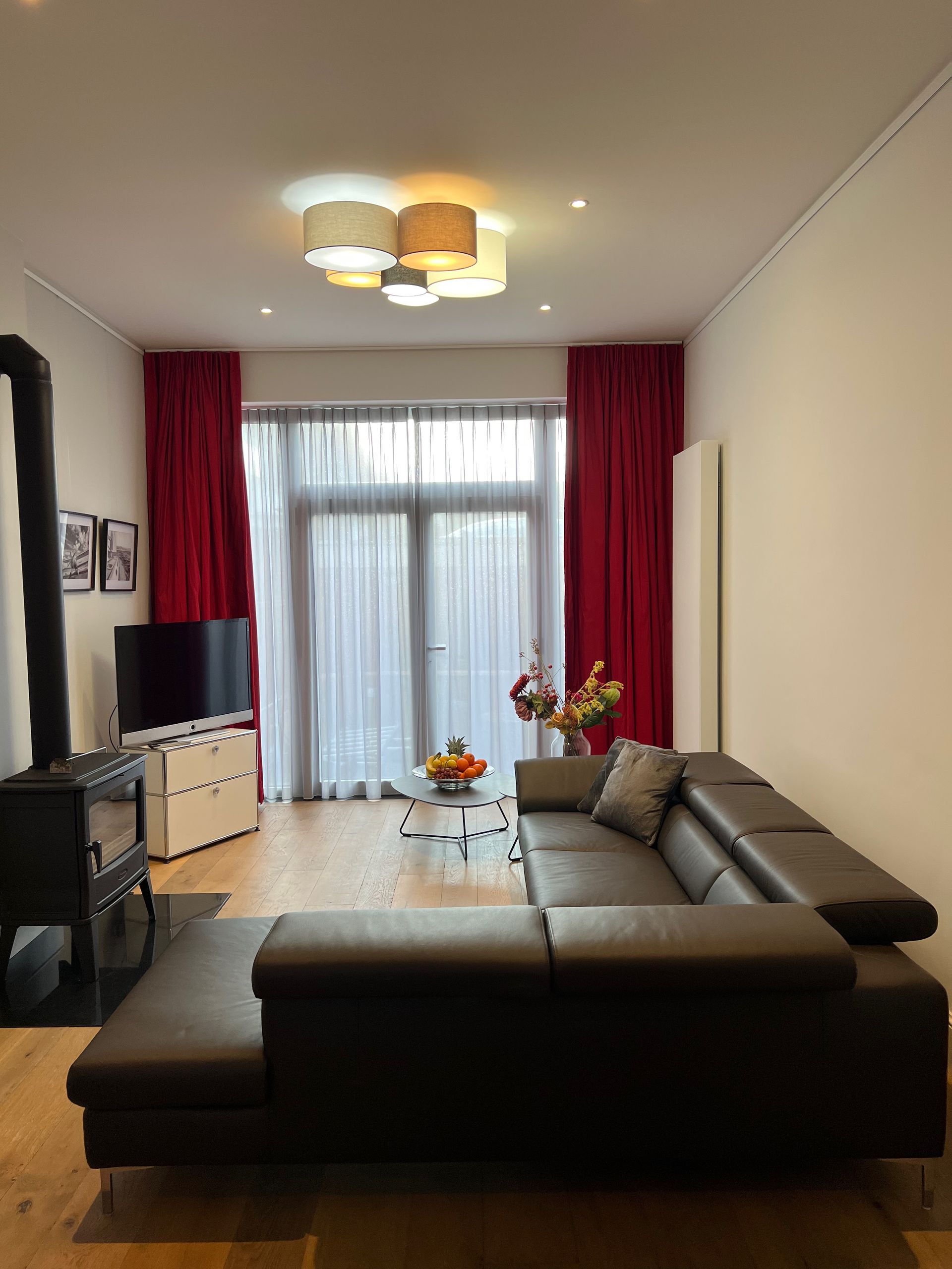 Ruime moderne woonkamer | kachel | open slaapgedeelte | groot 2 persoons bed | royale kledingkast