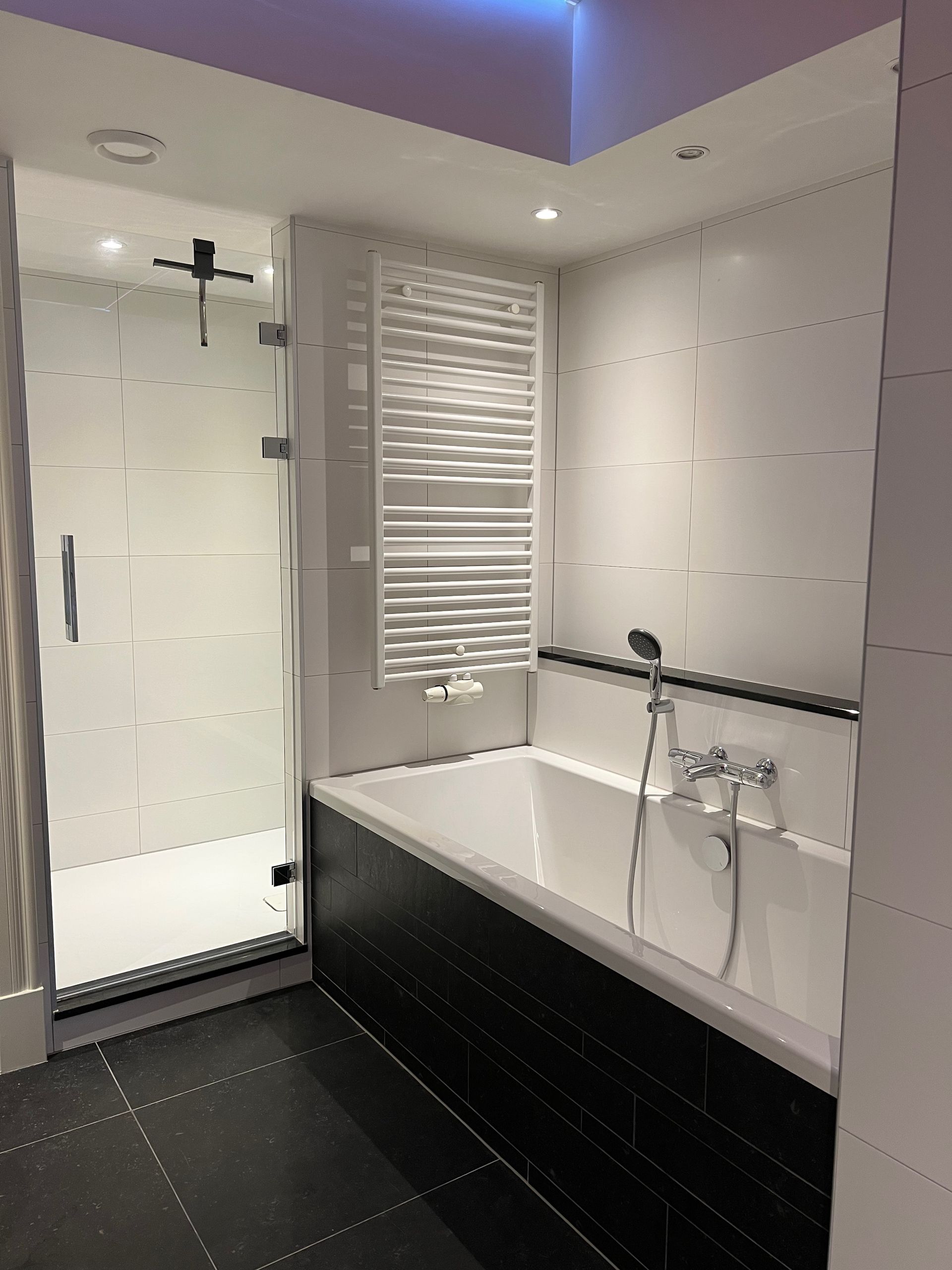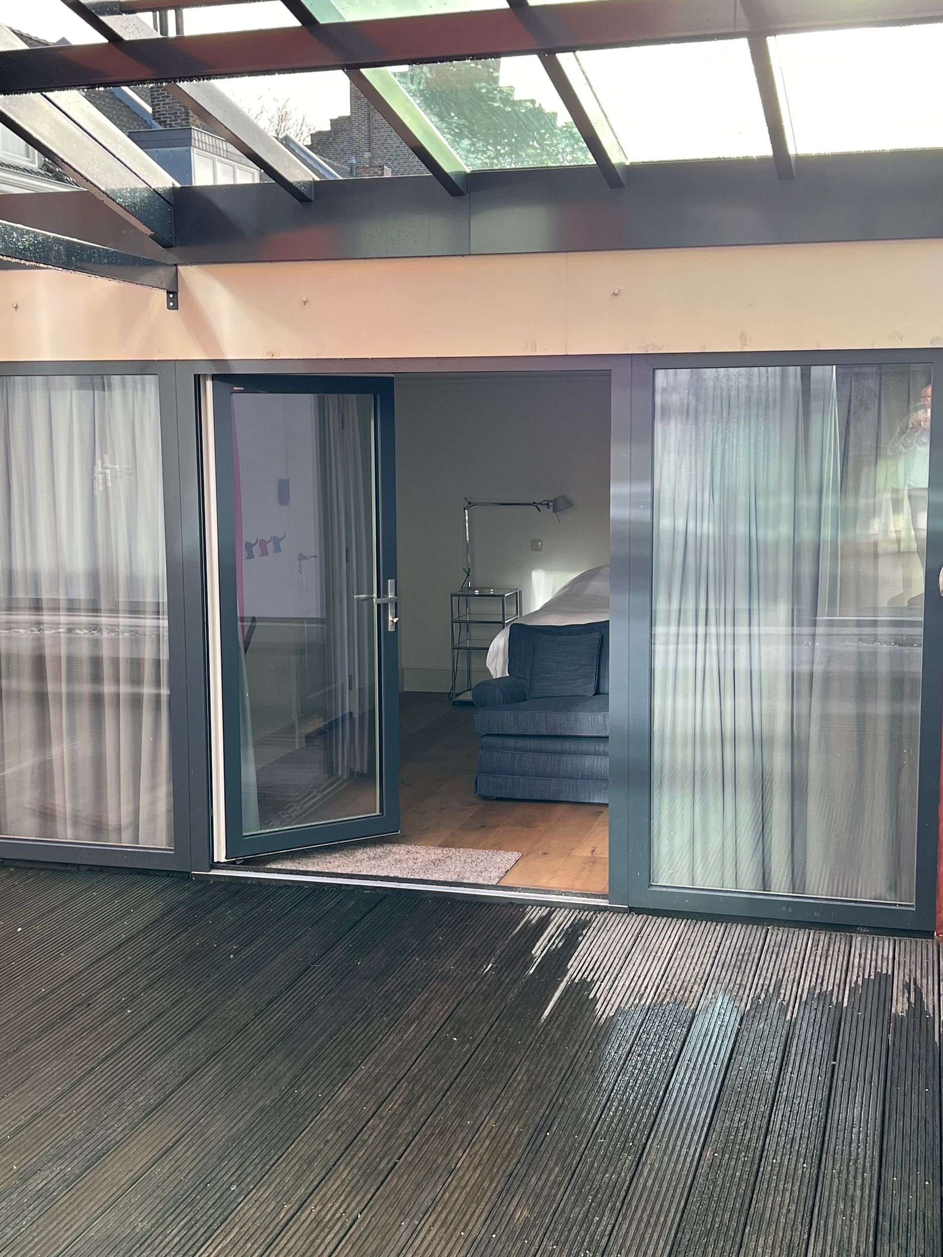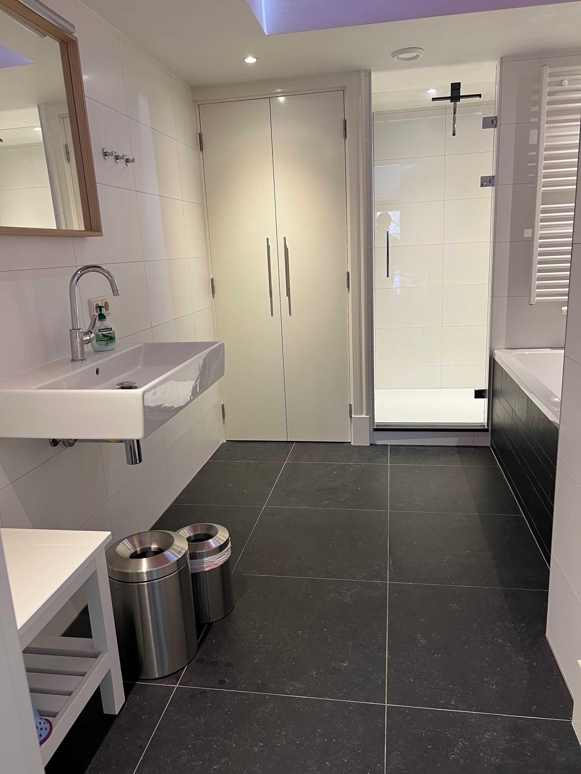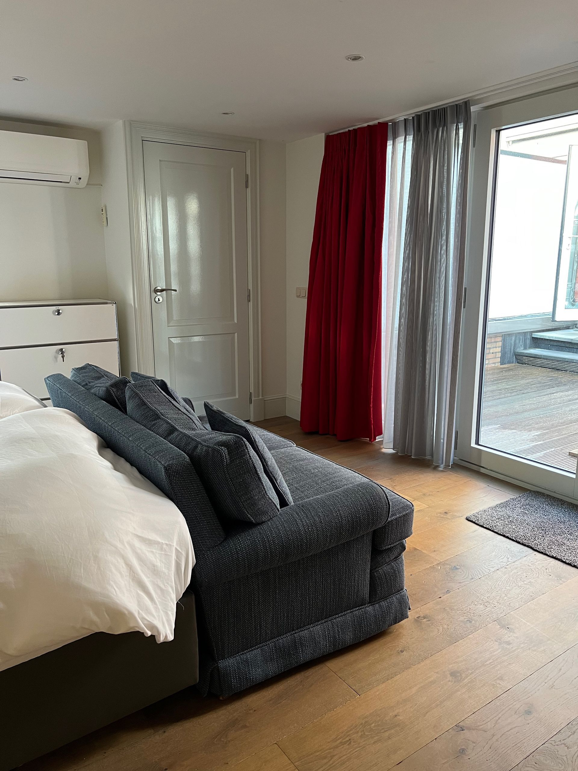 Via het dakterras bereik je het tweede gedeelte. Hier bevindt zich de tweede slaapkamer met groot twee persoonsbed, ruime badkamer, dubbele wastafel, ligbad, inloopdouche en apart toilet