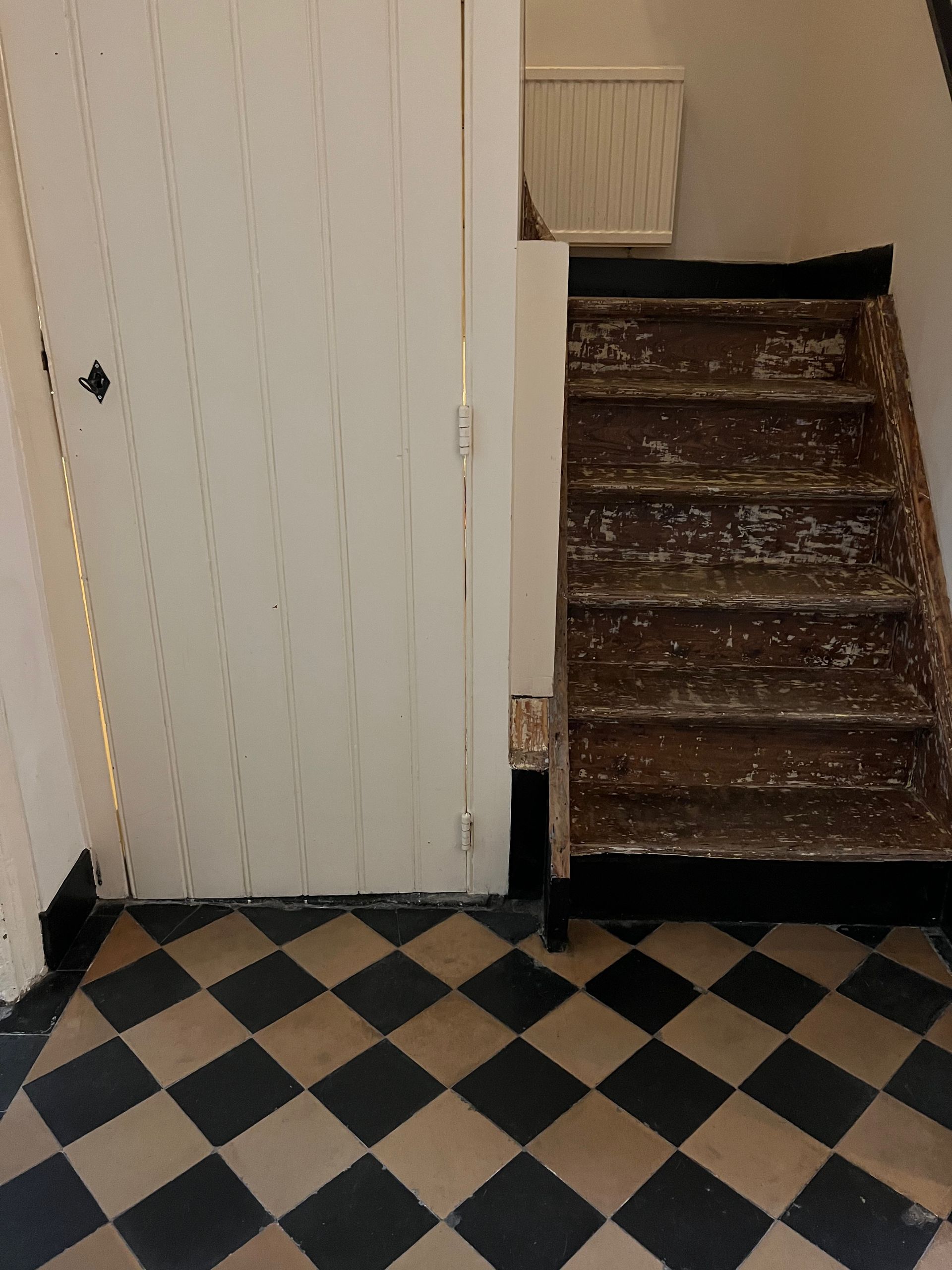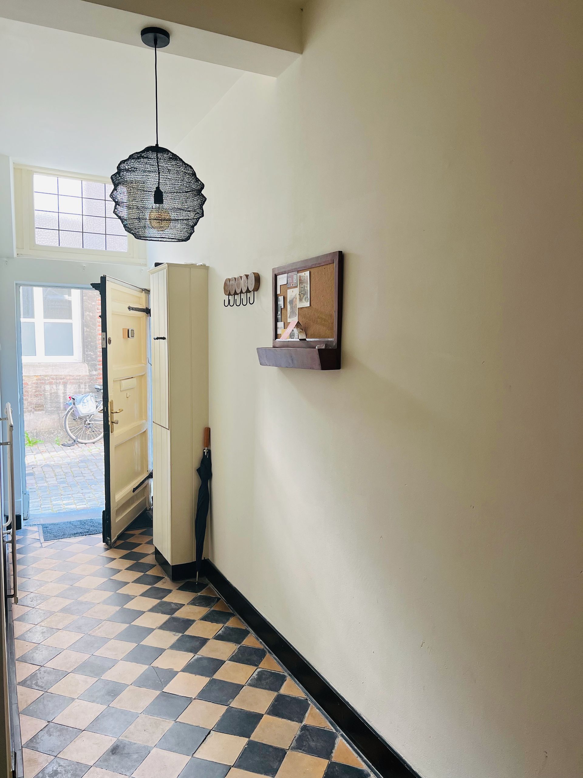 Ruime entree, gasten toilet met daarachter een ruime leef keuken (van alle gemakken voorzien) en aangrenzend stadstuintje.